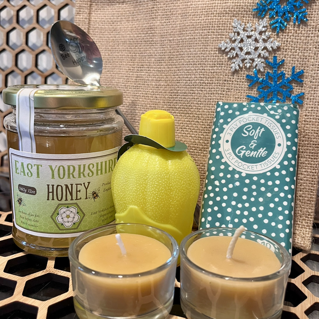 Jute gift bag with decorative snowflake patches sewn on the front.